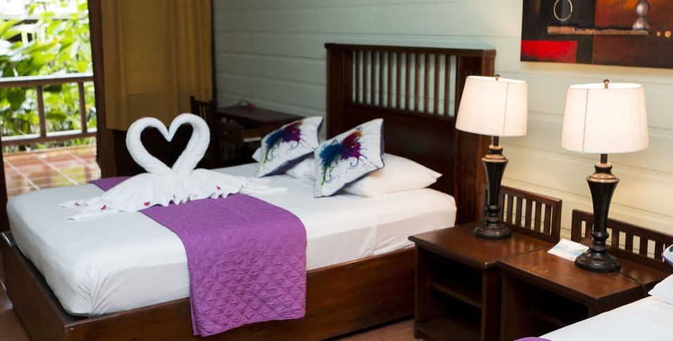 Relax on a sunny day, swimming in the uniquely designed pool, or enjoy beside it. The lodge offers 34 comfortable rooms decorated with bamboo furniture and equipped with private bathroom with hot water, two double beds, and ceiling fans.